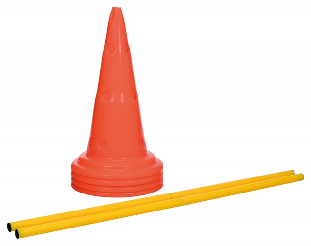 Inneholder 6 kjegler og 3 pinner laget av plast. Egnet for hunder i alle aldre eller størrelser ettersom hindringene kan justeres i høyden (i tre nivåer). Øker konsentrasjonen, kroppsbevisstheten og samspillet mellom hund og eier.