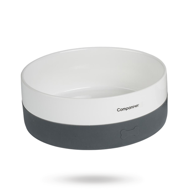 Den diskrete designen, prydet med et motiv av et hundeben på silikonbunnen, tilfører en sjarmerende touch som vil glede både deg og ditt kjæledyr. Skålen er tung og halkfri, noe som gjør den ekstra trygg å bruke, og reduserer risikoen for søl og rot.