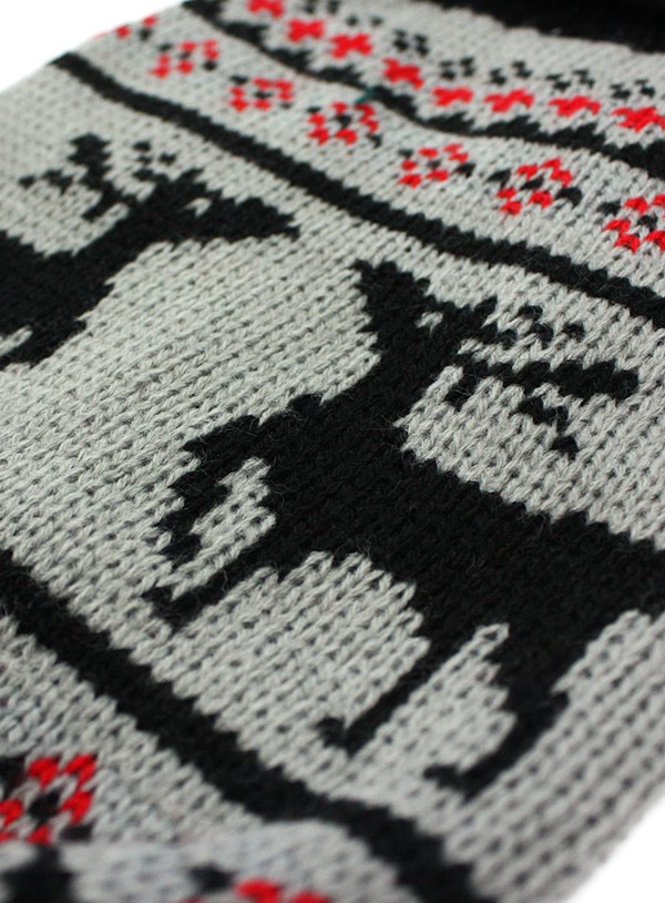 Nordic Reindeer er en varm, strikket hundegenser for kjølige dager. Den er enkel å ta av og på, og behagelig for hunden å ha på seg. Kan brukes som et mellomlag, under en jakke eller som overall.