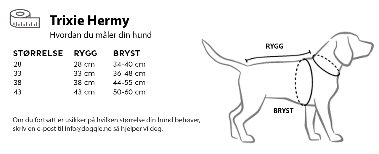 De reflekterende detaljene gir økt synlighet og sikkerhet under kveldsturer, noe som er en viktig faktor for hundeeiere. Den justerbare, elastiske brystlappen beskytter mot kulde og smuss, og med kardborrefestet i brystområdet og de justerbare løkkene for bakbenene, kan du være trygg på at Hermy sitter perfekt på hunden din.