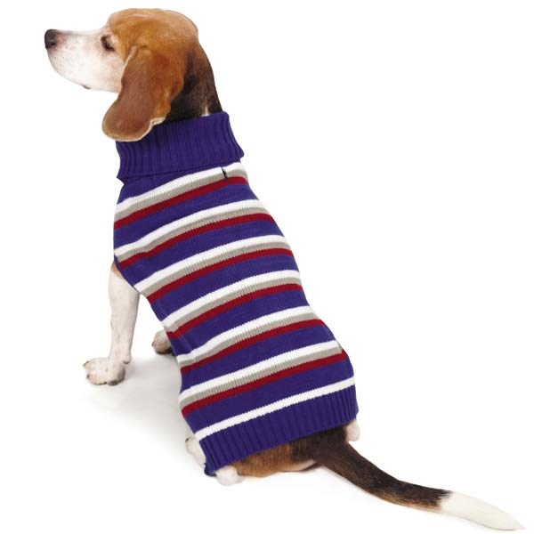 Strikket genser for kjølige dager. Enkel å ta av og på, og behagelig for hunden å bære. Kan brukes som et mellomlag, under en jakke eller overall.