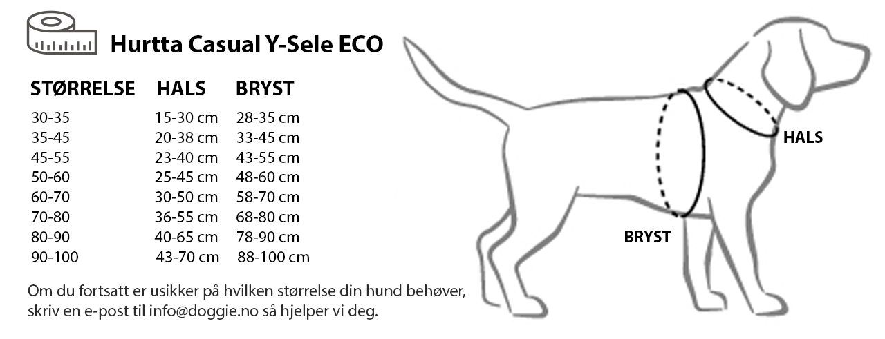 Med komfortabel, vanntett neoprenpolstring, en metallring for båndfeste foran og lyse 3M-reflektorer for bedre synlighet i mørket, er Hurtta Casual Y-sele ECO både praktisk og stilfull, og gir hunden din den beste opplevelsen på tur.